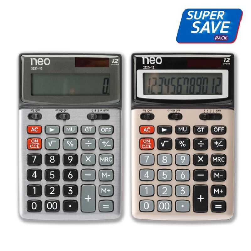 NEO เครื่องคิดเลข 12 หลัก รุ่น 2223-12 สีเทาเงิน-ทอง (แพ็ค 2 เครื่อง)