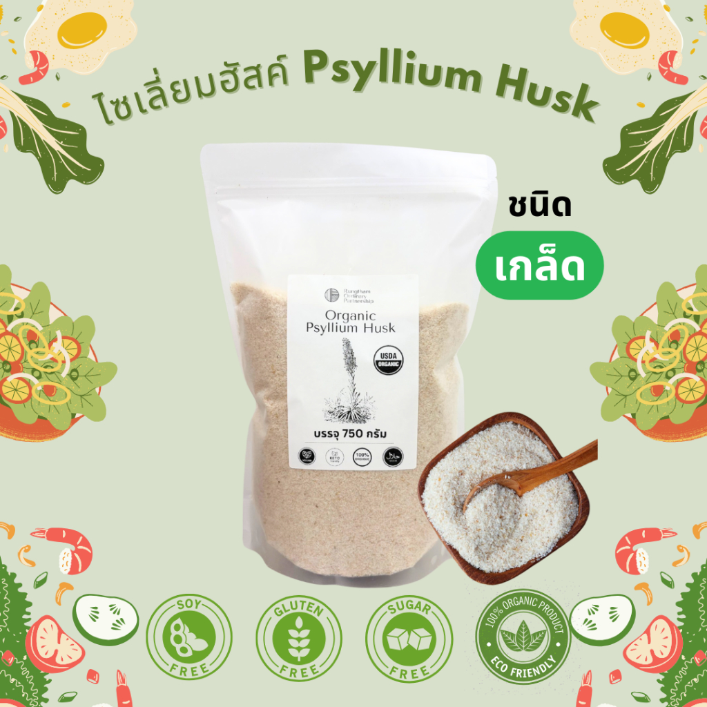 ไซเลี่ยมฮัสค์ ออกานิค100% เกรดพรีเมียม ชนิดเกล็ด พองตัว 20 เท่า ขนาด 1000 กรัม Psyllium Husk Organic