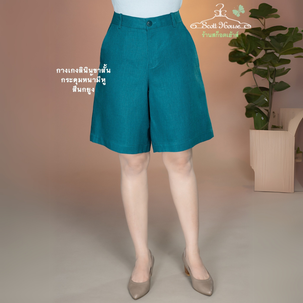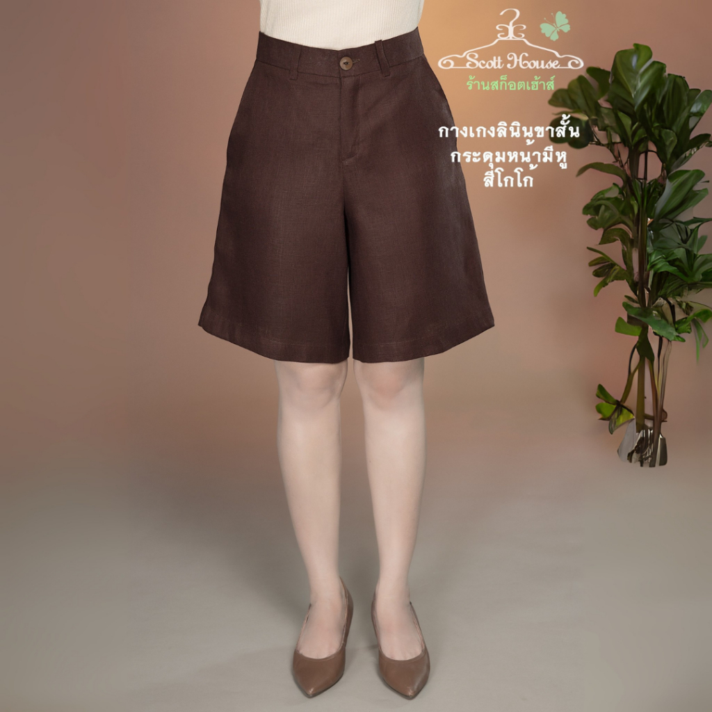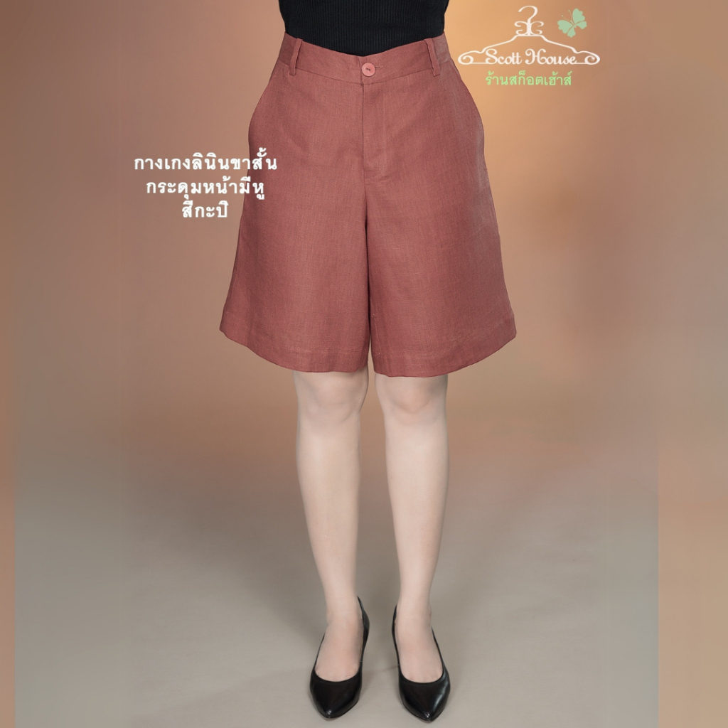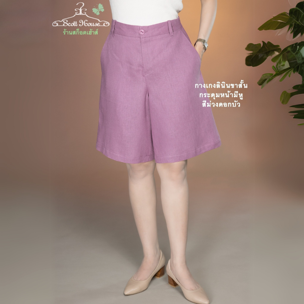กางเกงลินินแท้100% รุ่นขาสั้นกระดุมหน้ามีหู สีพื้น และทอลาย