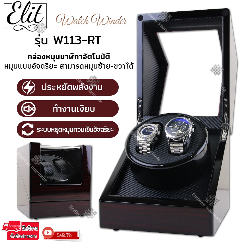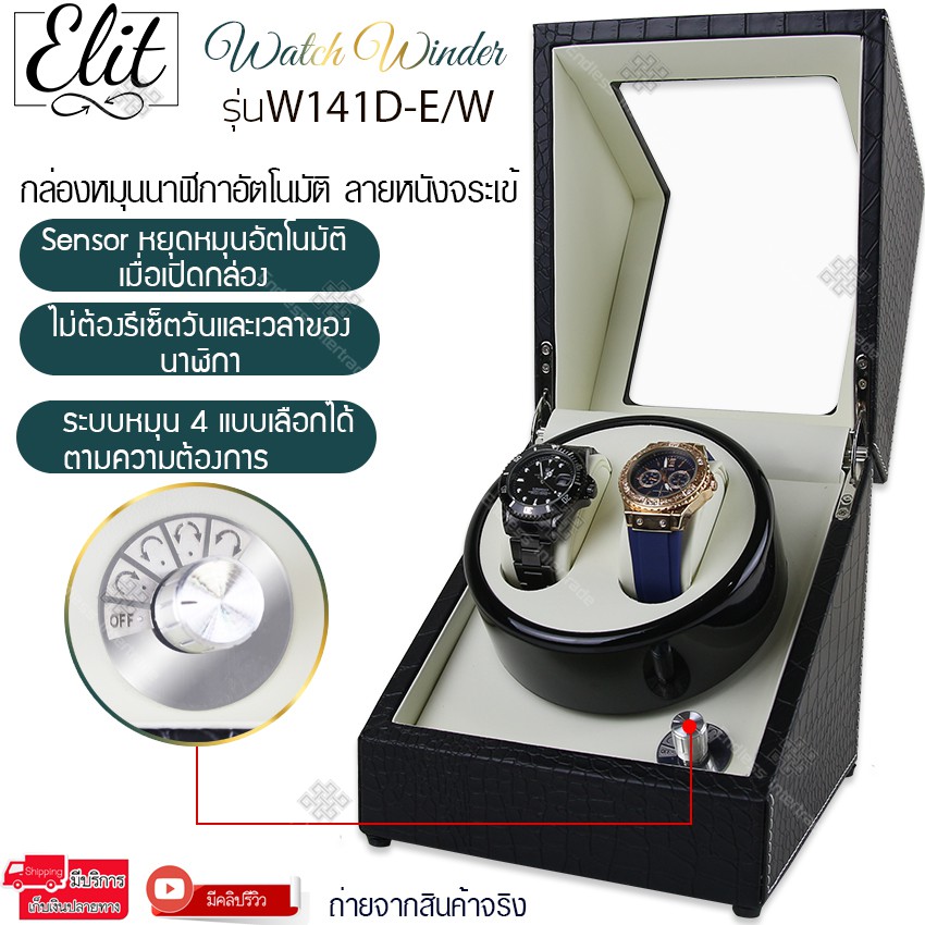 Elit กล่องหมุนนาฬิกา อัตโนมัติแบบ 2 ช่อง ฝากระจกใส แข็งแรง รุ่น W113B,W102B,W102T,W113-RT,W113-BT,W141D-E/W,W141D-E/T