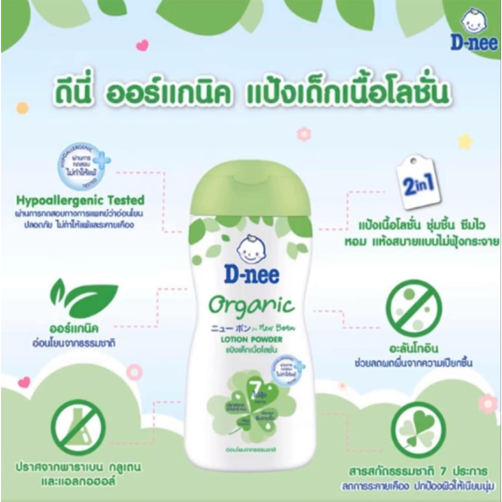 (ส่งด่วน/ส่งทันที🔥) D-nee ดีนี่ ออแกนิค นิวบอร์น แป้งเด็กเนื้อโลชั่น กลิ่นหอม (180/400 มล.) แป้งเนื้อโลชั่น สูตรอ่อนโยน