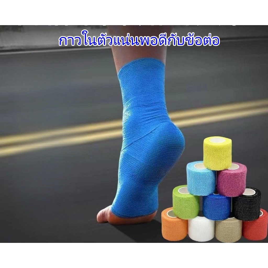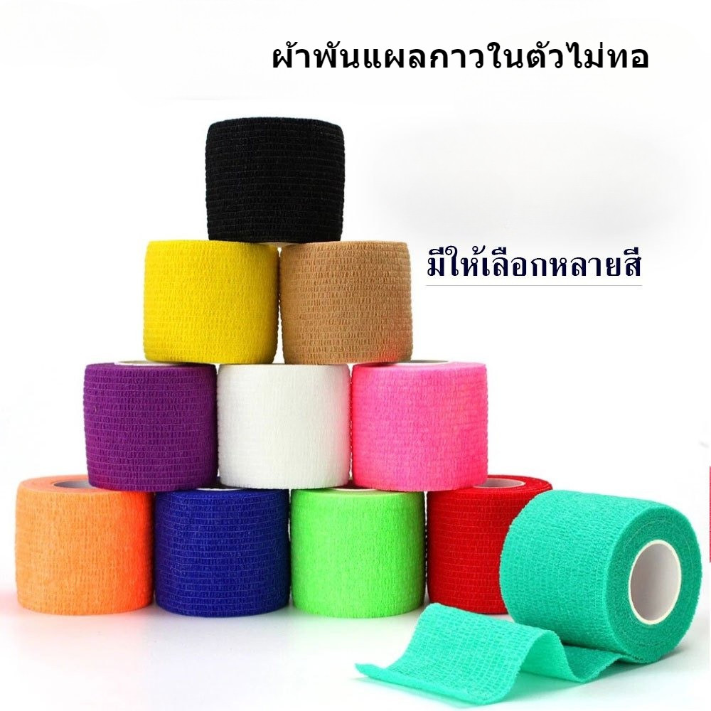 ผ้าพันแผลกาวในตัวไม่ทอ เทปพันแผลแบบยืดหยุ่น เทปพันออกกำลังกาย เทปกีฬา ขนาด 2.5 cm* 4.5m G3265