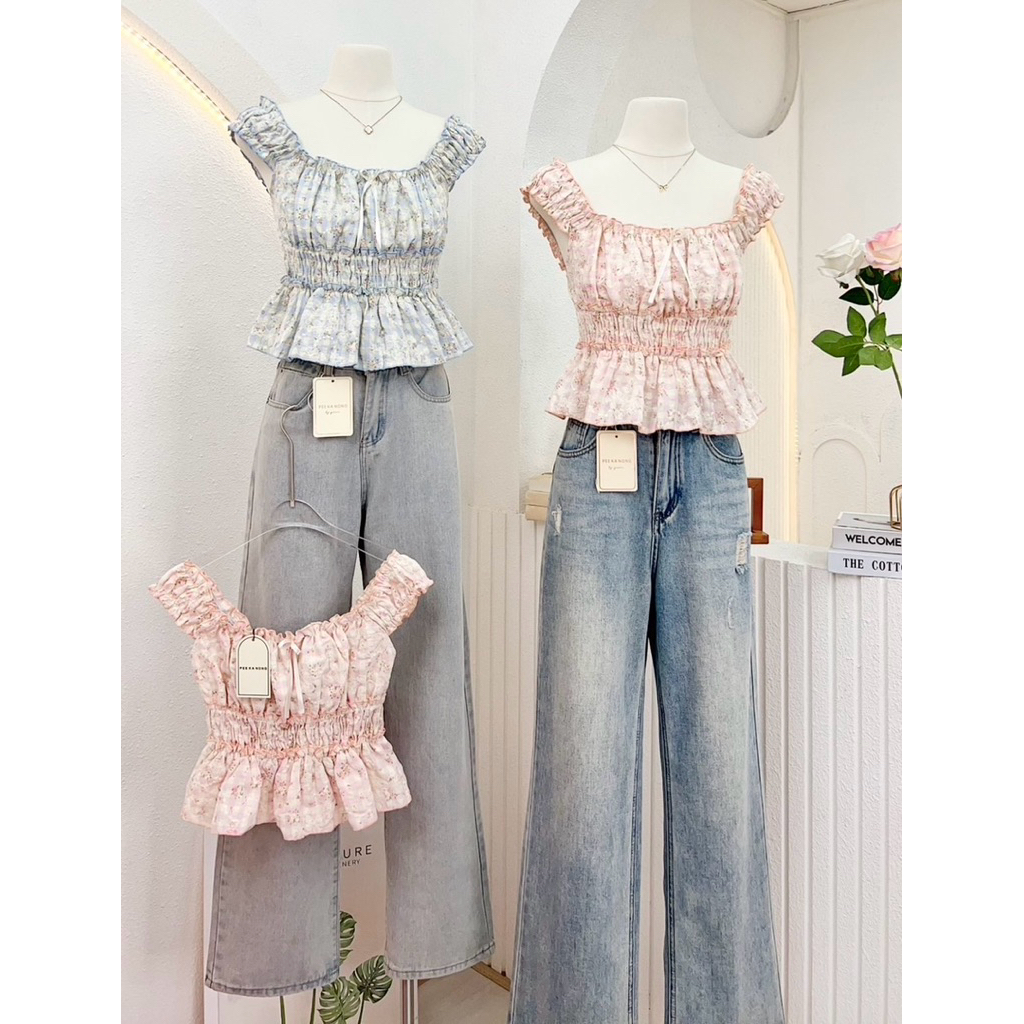 NN681 เสื้อครอปแขนตุ๊กตาผูกโบว์อก ผ้าปัก Peekanong🌷