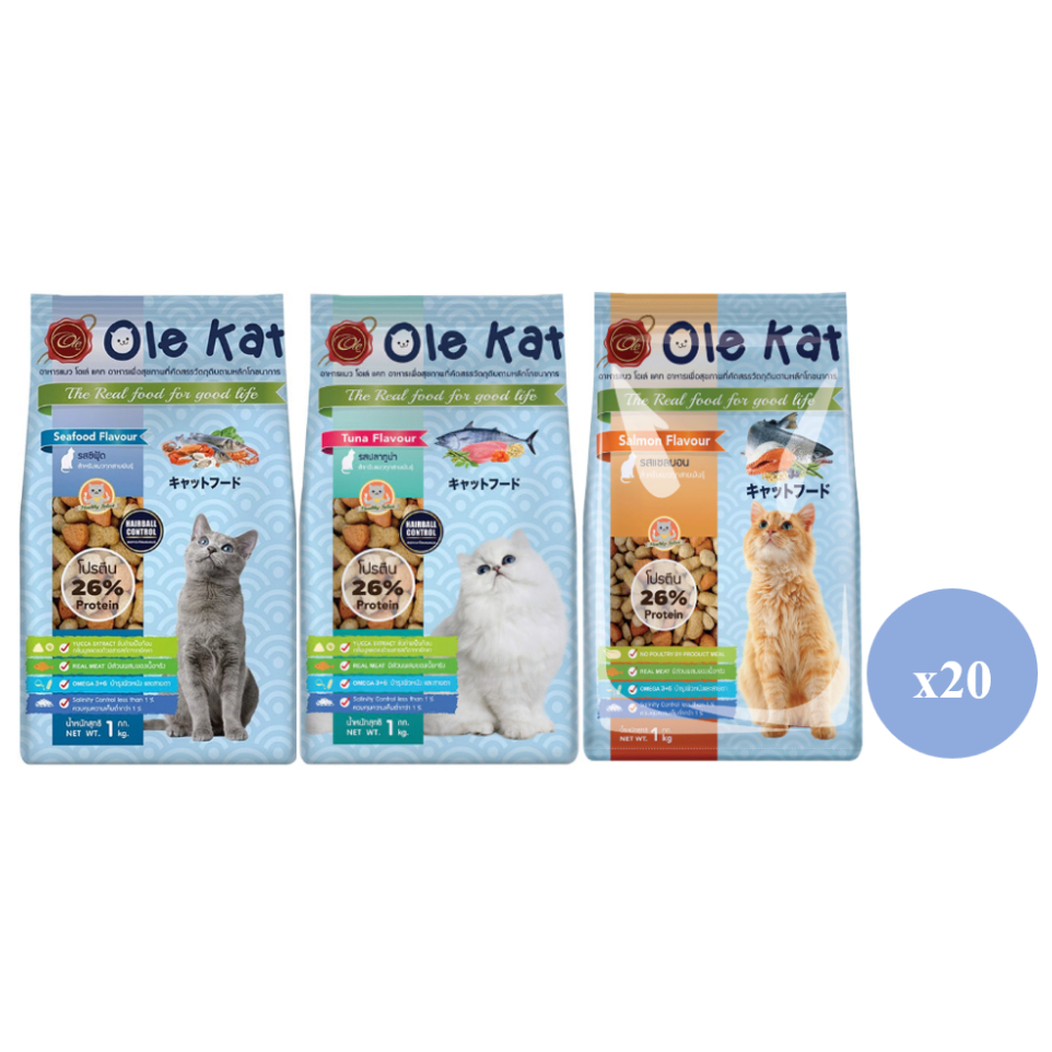 Ole Kat แมวโต แบบเม็ด 3 สี (1 กก.) แบบยกกระสอบ บรรจุ 20 ถุง