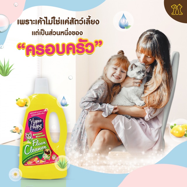 Yippee Happy น้ำยาถูพื้นสำหรับสัตว์เลี้ยง ทำความสะอาด สำหรับสัตว์เลี้ยงแพ้ง่าย 850ml.[YP01]