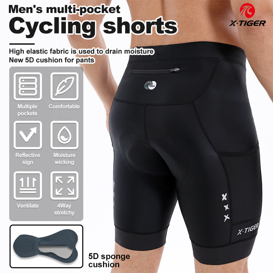 X-tiger ใหม่หลายกระเป๋ากางเกงขาสั้นขี่จักรยานกางเกงขาสั้น 5D เบาะลื่นทอกระเป๋าขี่จักรยานกางเกงขาสั้น Breatha