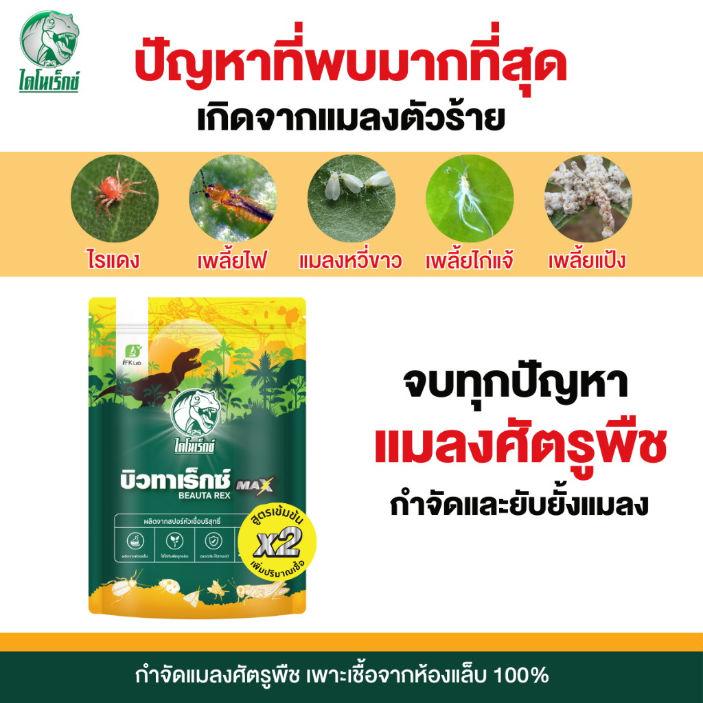 กำจัดแมลงศัตรูพืช ด้วงงวงมะพร้าว ในสวนปาล์ม และ พืชทุกชนิด บิวทาเร็กซ์ แม็กซ์ เชื้อX2 ตรา ไดโนเร็กซ์