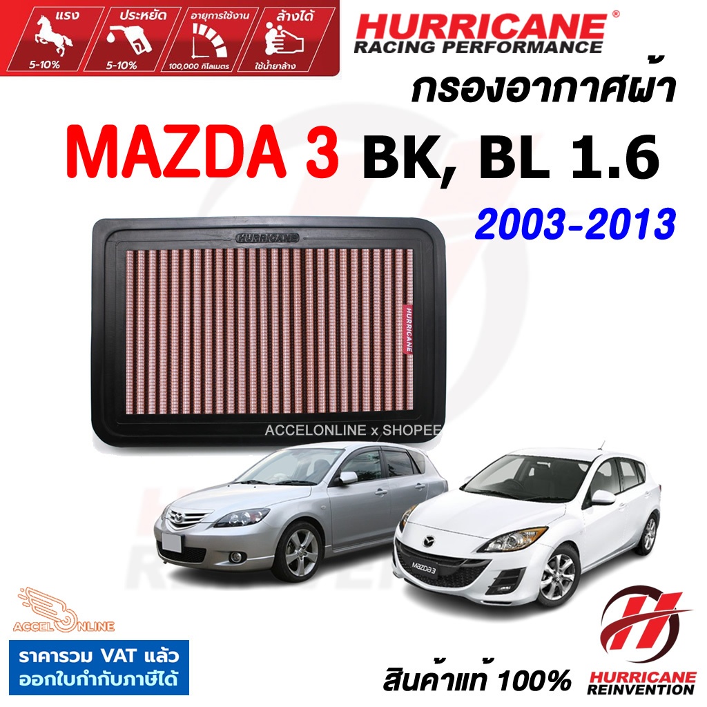 Hurricane กรองอากาศ Mazda3 โฉม BK, BL ปี 2003-2013 ใส้กรองอากาศ ล้างได้ เพิ่มแรงม้า มาสด้า3