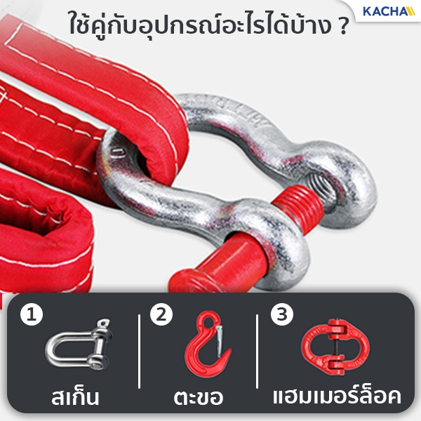 Kacha (แท้) สายพานยกของ สีขาว มีห่วงหัว-ท้าย สลิงผ้าใบ 3 ตัน สลิงผ้าใบ สลิงโพลีเอสเตอร์ หลายขนาด