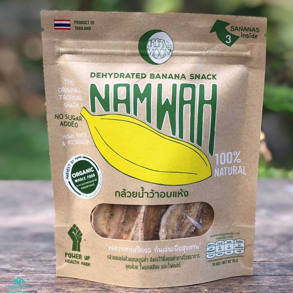 NAM WAH กล้วยอบแห้ง โดย ORGANIC MOON กล้วยน้ำว้าอบแห้ง 100%