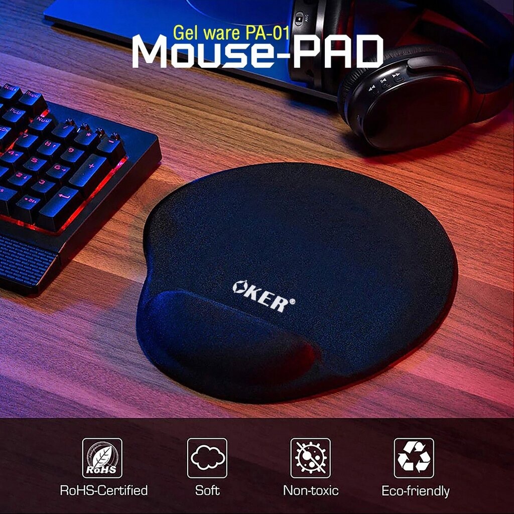 OKER PA-01 GEL WARE MOUSEPAD แผ่นรองเมาส์ พร้อมเจลรองข้อมือบรรเทาอาการเมื่อยล้า