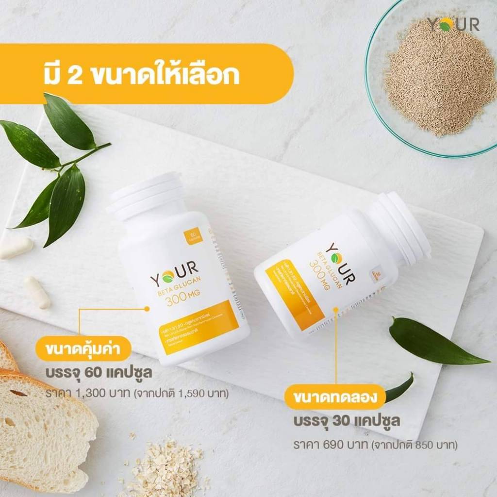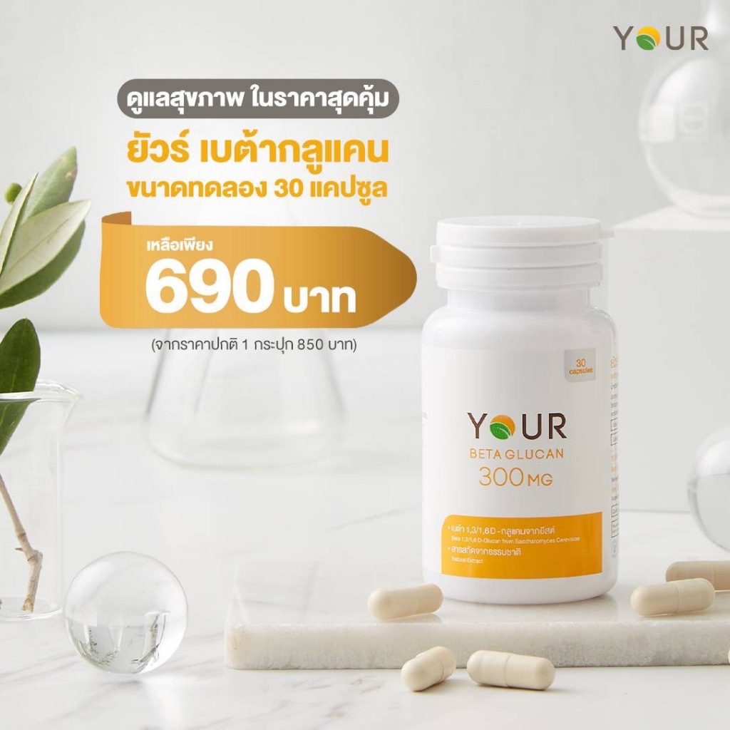 YOUR Betaglucan ยัวร์ เบต้ากลูแคน 1,3/1,6D จากยีสต์ Saccharomyces cerevisiae 30 แคปซูล 3 ขวด