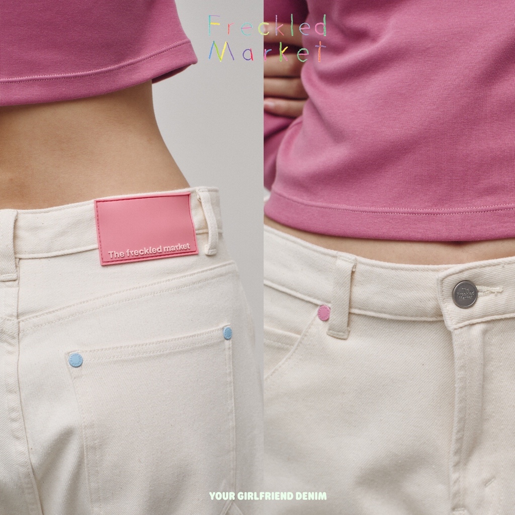 The Freckled Market - Your Girlfriend Denim กางเกงยีนส์ขากระบอกคาร์โก้ เอวกลาง