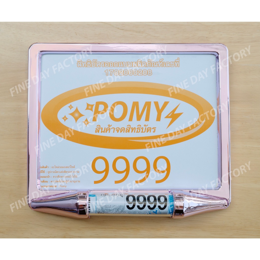 กรอบป้ายทะเบียน มอเตอร์ไซค์ [สี ทอง ชมพู] พร้อม หลอด แคปซูล พรบ. กันน้ำ