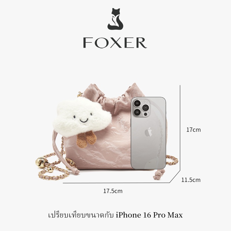 FOXER เมฆรูปร่างกระเป๋าผู้หญิง กระเป๋าสะพายน่ารัก กระเป๋าสะพายไหล่เดี่ยว Drawstring Design โซ่ไหล่ฮาร์ดแวร์คุณภาพสูง