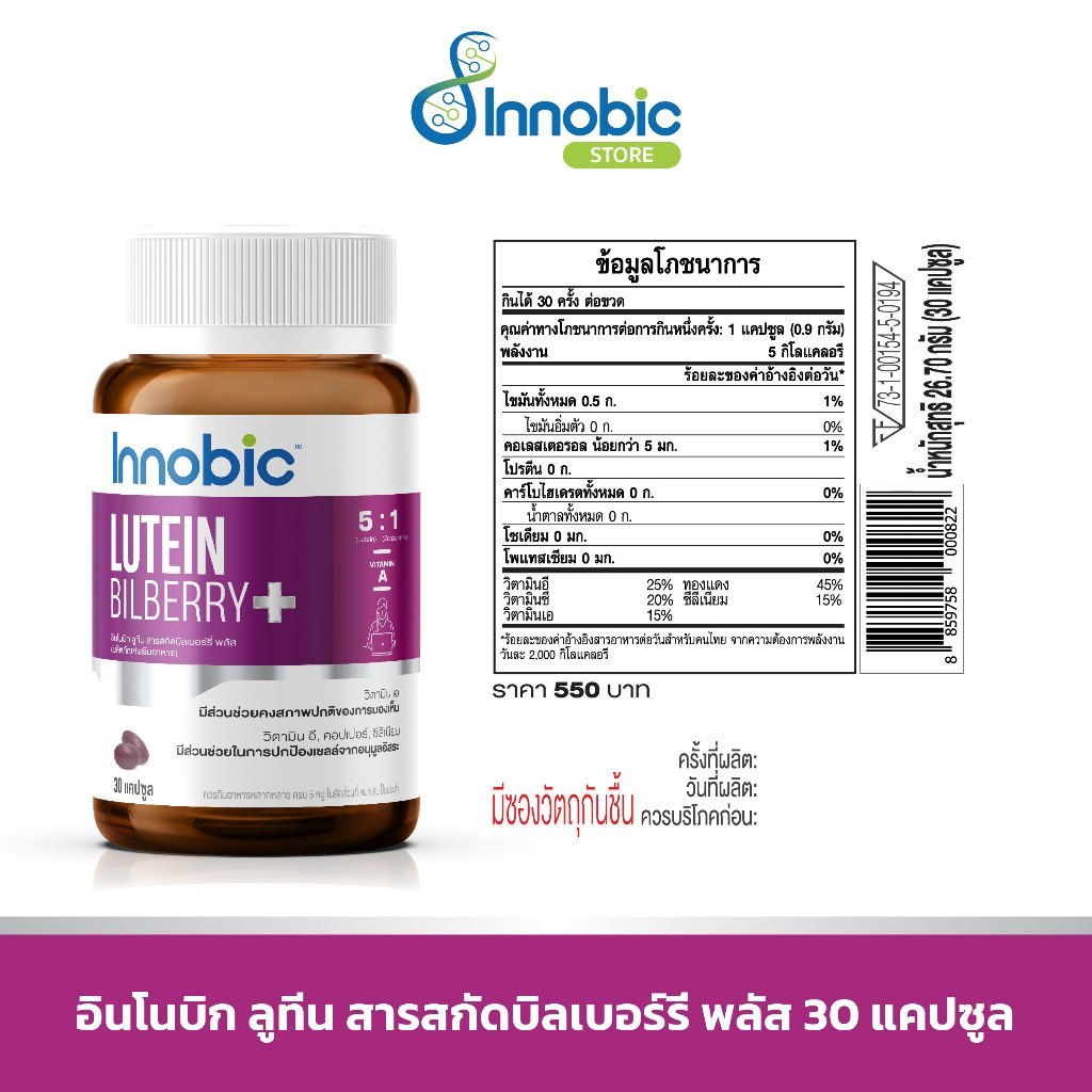 Innobic Lutein Bilberry Extract อินโนบิก ลูทีน สารสกัดบิลเบอร์รี่ พลัส [ 30 เม็ด ] การมองเห็น บำรุง