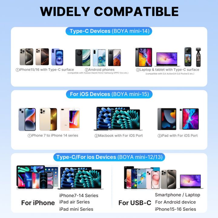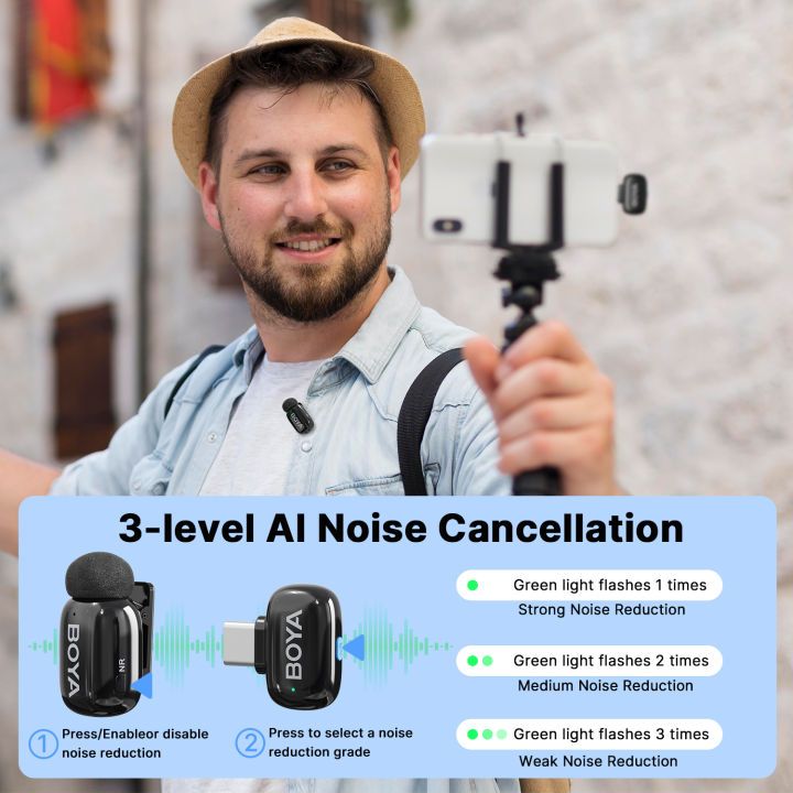 BOYA mini ไมค์ไร้สาย ตัดเสียงรบกวน ไมค์อัดเสียง เล็กที่สุด Type-C ไมค์ไอโฟน สำหรับ iPhone / Android