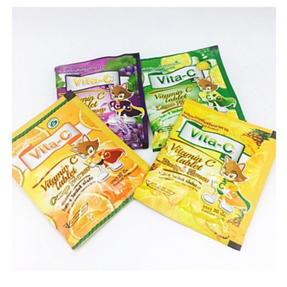 Vita-C Vitamin C ไวต้า ซี วิตามินซี 12 mg แต่งกลิ่น สำหรับอม เคี้ยว จำนวน 1 ซอง บรรจุ 30 เม็ด