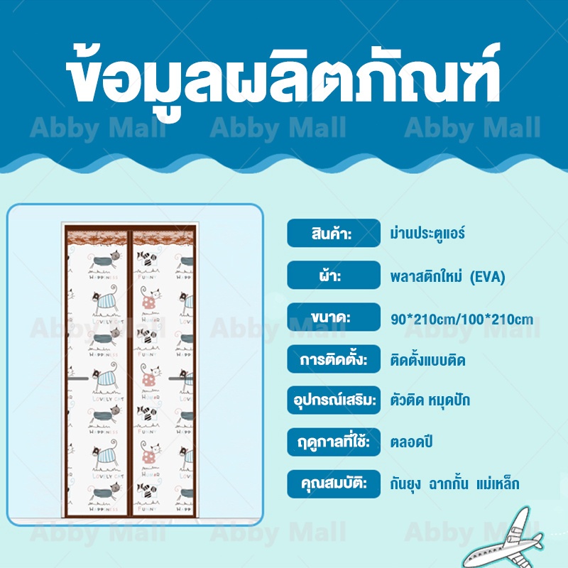 ABBY ม่านประตูกันแอร์ ผ้าม่านกันแอร์ 90x210/100x210cm ฟรีแถบกาวตีนตุ๊กแก ป้องกันความเย็น ป้องกันยุง