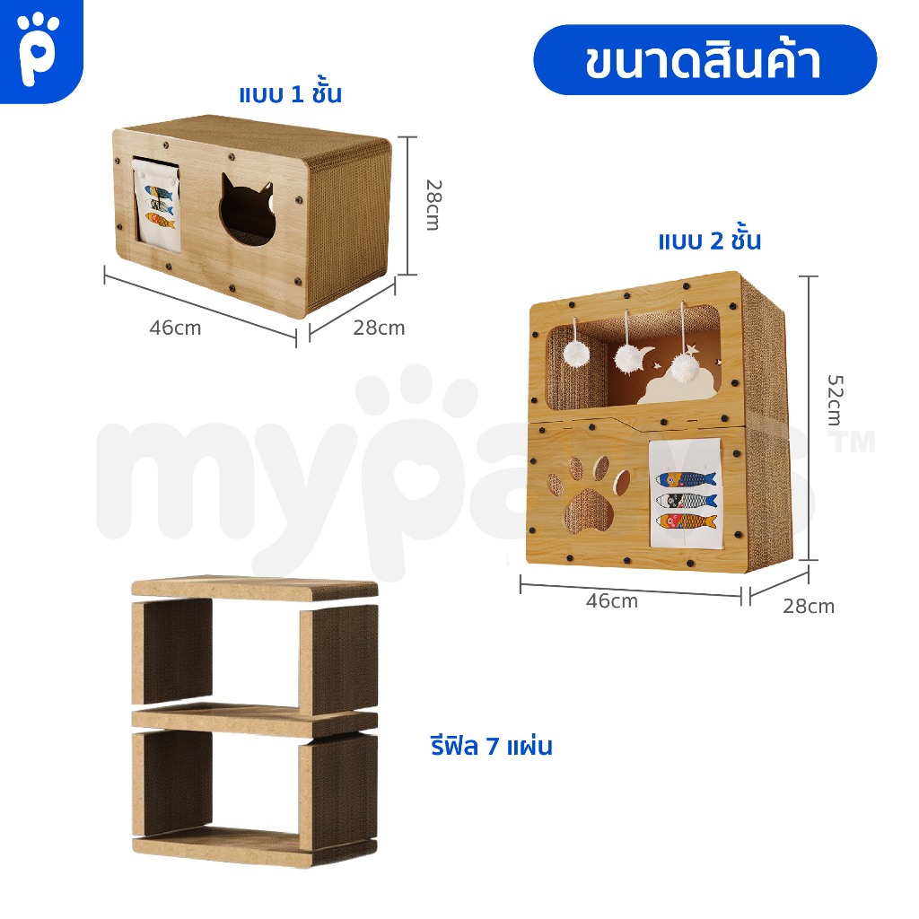 [🔥Clearance Sale]My Paws บ้านลับเล็บ ที่ลับเล็บแมวกระดาษ ของเล่นแมว แข็งแรง บ้านแมว มีให้เลือกทั้งแบบชั้นเดียวและสองชั้น