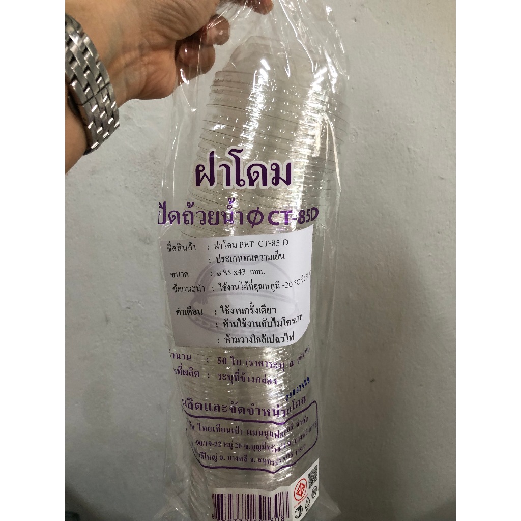 ฝาPETขนาดปากกว้าง85มม.ฝาฮาฟไม่เจาะ ฝาเรียบเจาะ ฝาโดมไม่เจาะ ยี่ห้อTL บรรจุ1แถว50ชิ้น