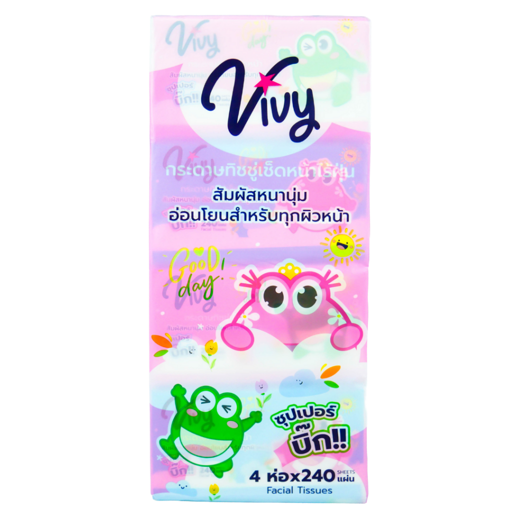1 แพ็ค 4 ห่อ ทิชชู่เช็ดหน้า ViVy 240แผ่น GoodDay (COSP)