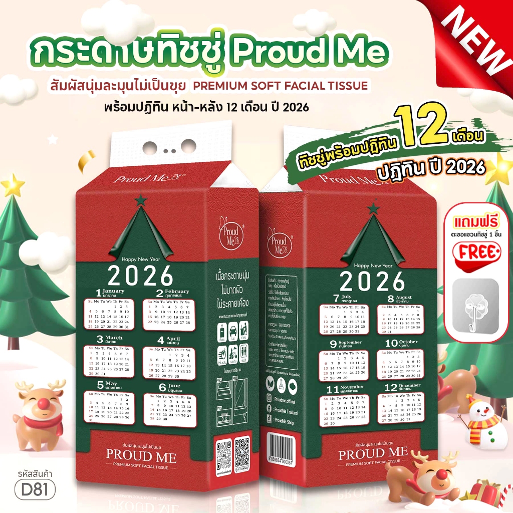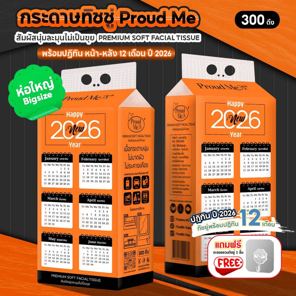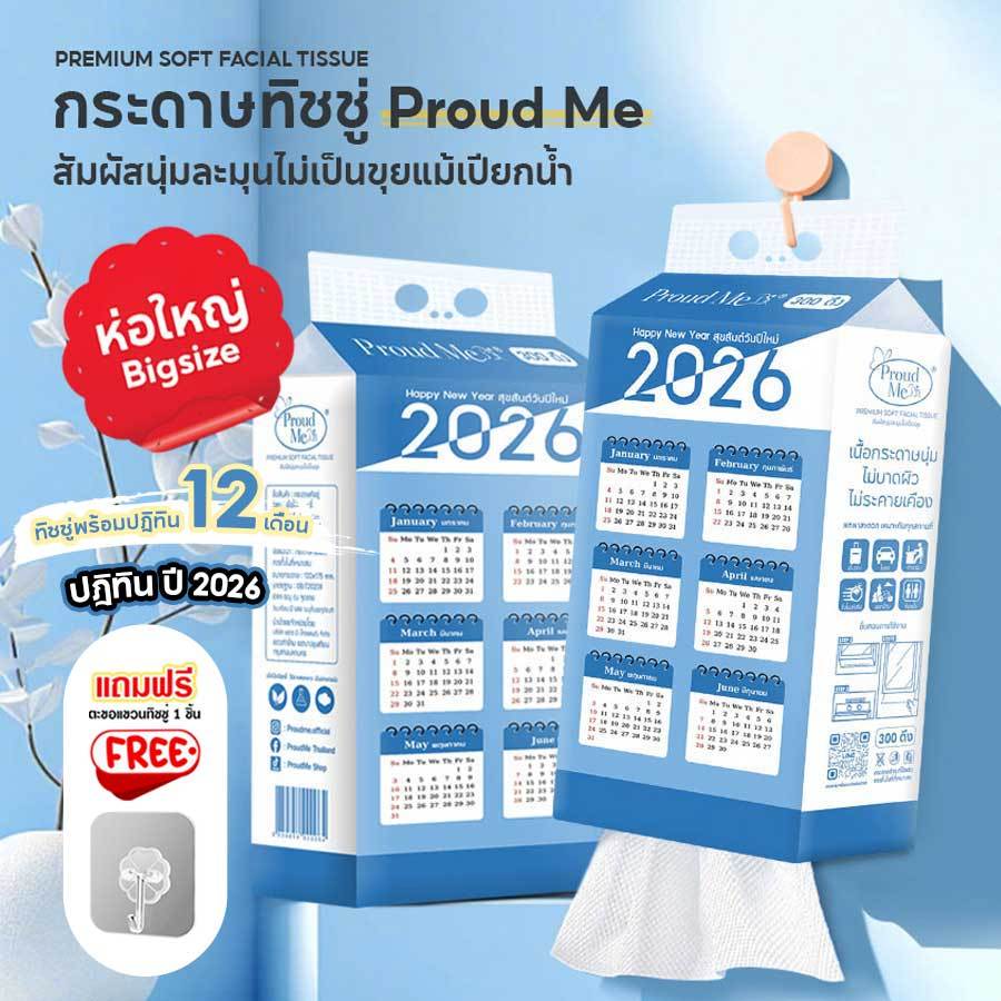 ทิชชู่Proudme ทิชชู่ปฏิทิน สัมผัสนุ่มละมุนไม่เป็นขุย 2หิ้ว 4หิ้ว 10หิ้ว D81 D82 D83