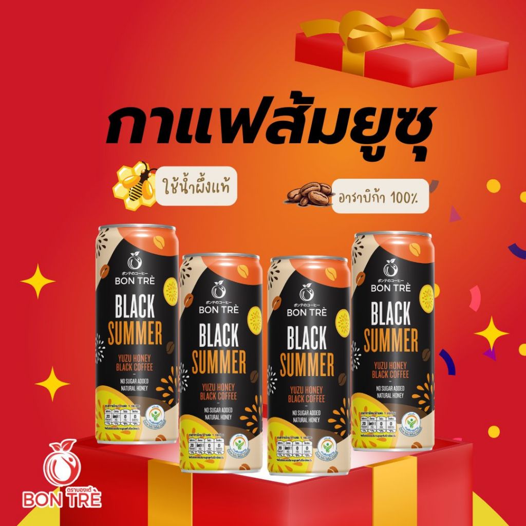 กาแฟดำส้มยุสุ แบล็คซัมเมอร์คอฟฟี่ 220 ml x 4 กระป๋อง