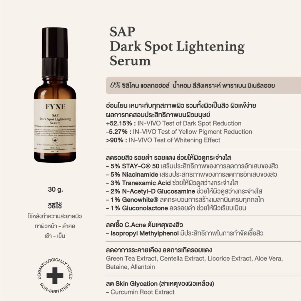 S01 + K I ( ลดสิว ลดรอยสิว ) FYNE BHA Serum+FYNE SAP Dark Spot Serum