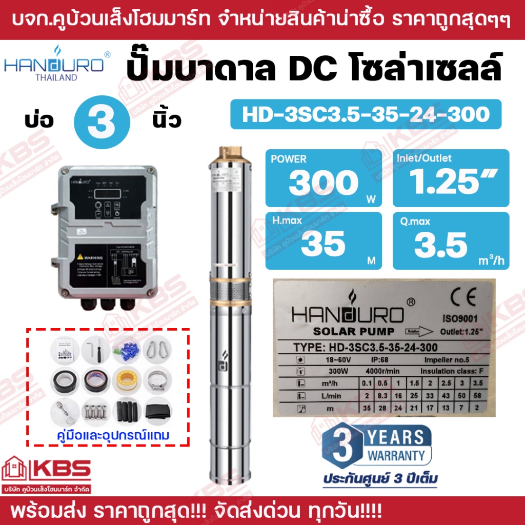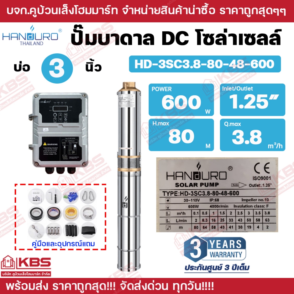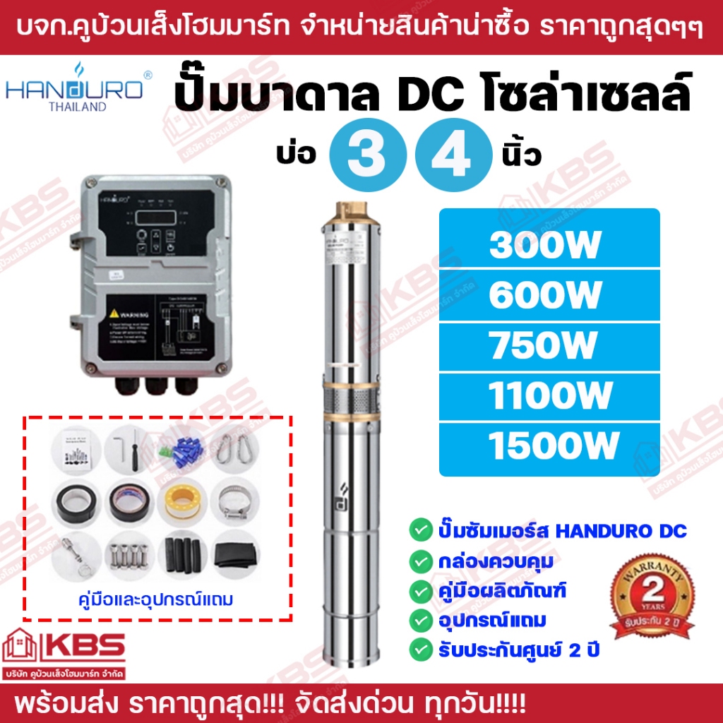 ปั๊มบาดาล DC Brushless HANDURO บ่อ 3 นิ้ว 4 นิ้ว ขึ้นไป รุ่น HD-3SC HD-4SC 300W 600W 750W 1100W 1500W ปั๊มบาดาลโซล่าเซลล