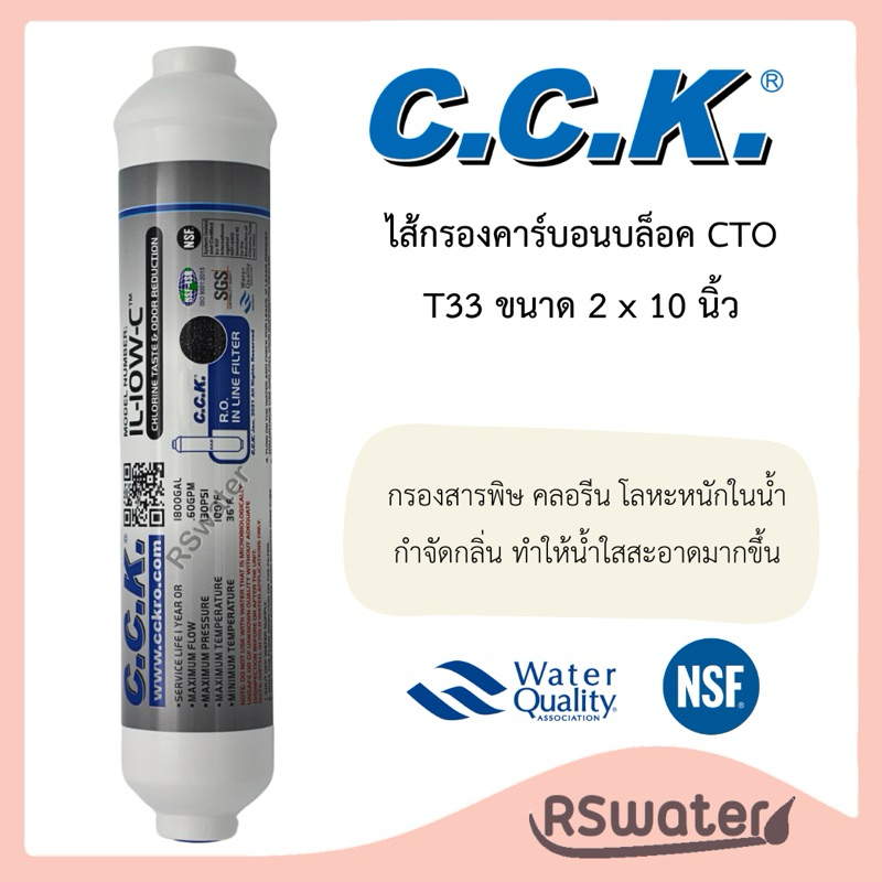 CCK ไส้กรองน้ำ อินไลน์ โพสต์คาร์บอน หัวเกลียว ขนาด 2 x 10 นิ้ว (T33) / 2.5 x 12 นิ้ว (K33) Inline Postcarbon