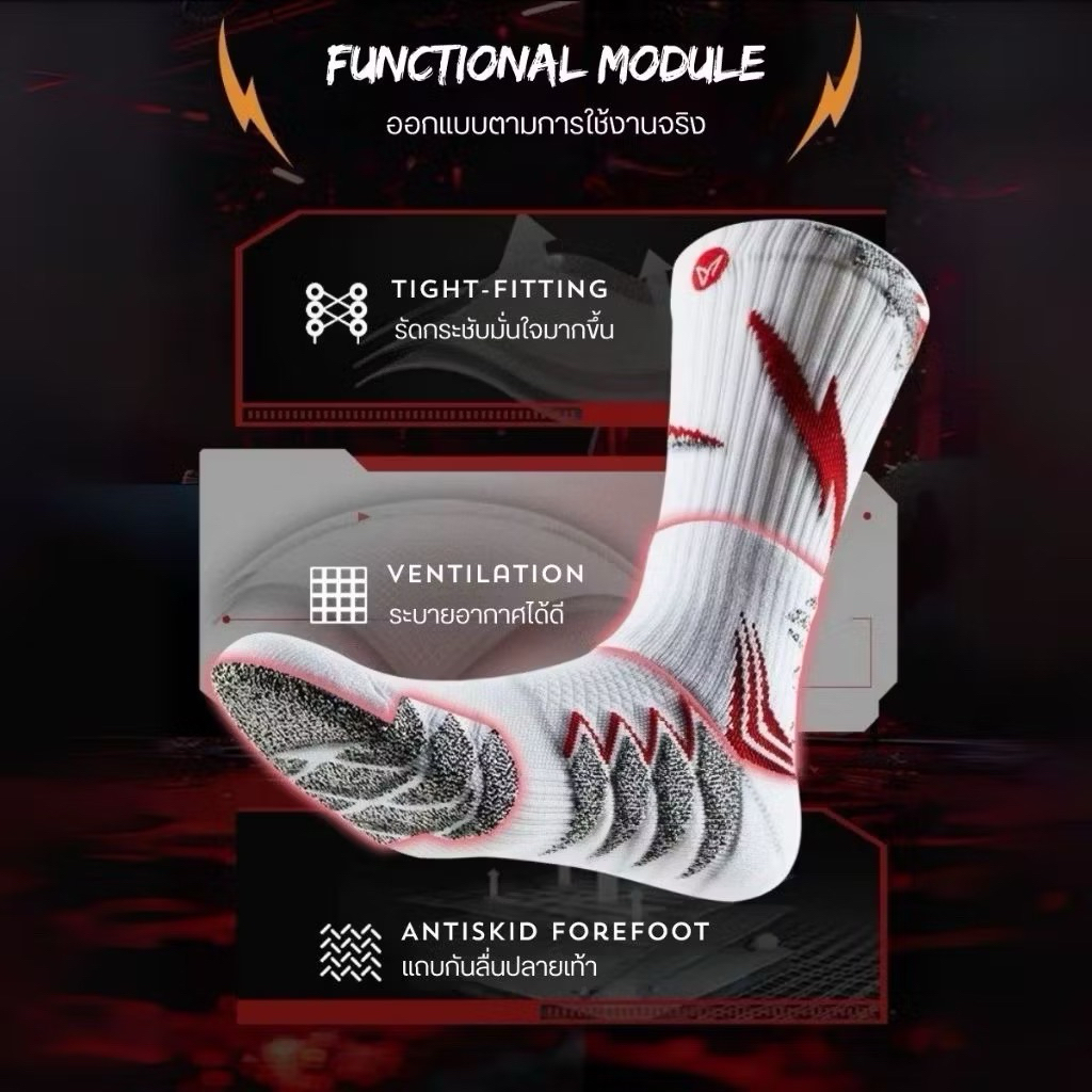 Veidoorn ถุงเท้ากีฬา รุ่น Shark Zonal Pro แบบสั้น มีแถบป้องกัน และ กันลื่น