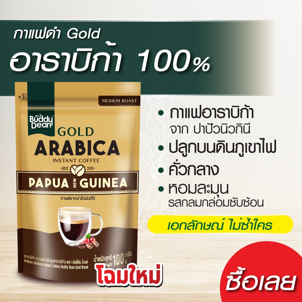 [เซ็ต 3 ถุง] กาแฟบัดดี้ดีน โกลด์ ปาปัวนิวกินี100 กรัม