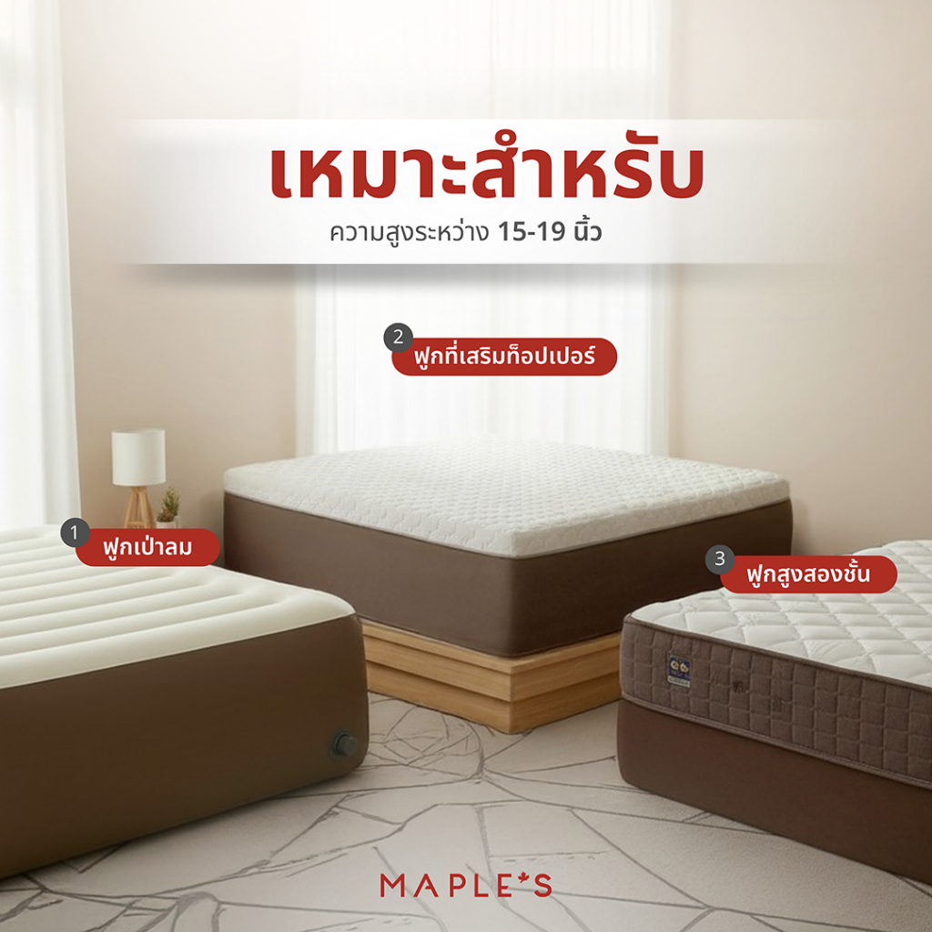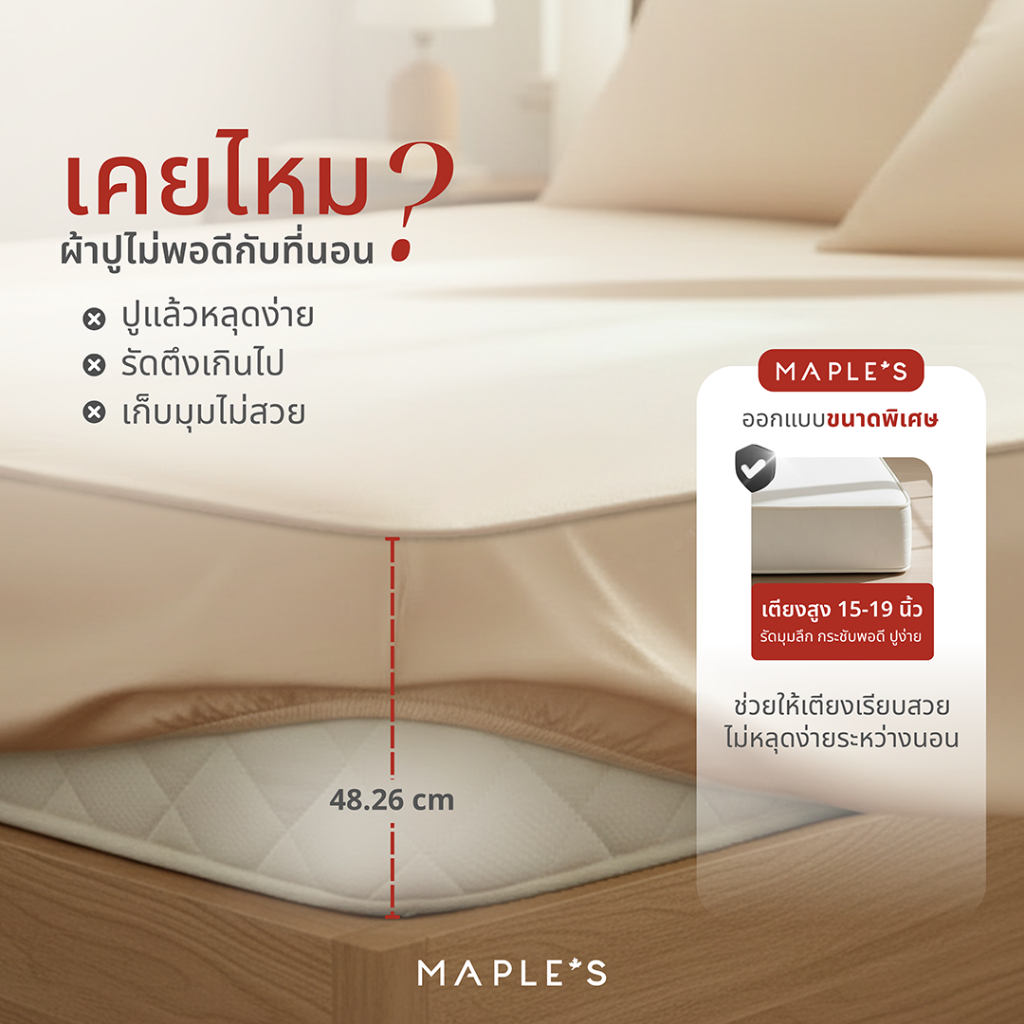MAPLE'S ผ้าปูที่นอนรัดมุม สูง15-19นิ้ว 550เส้น รุ่นSolid กันไรฝุ่น สําหรับคนเป็นภูมิเเพ้ เตียงลม หนา