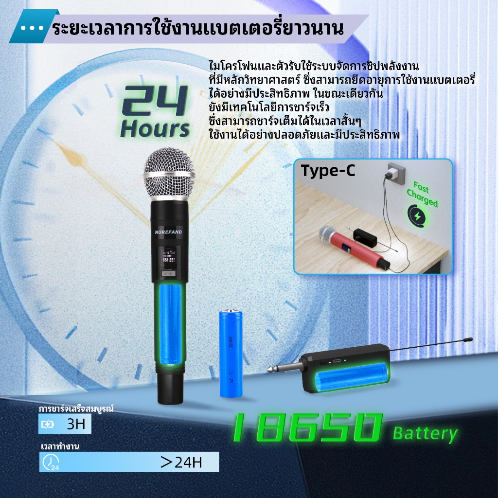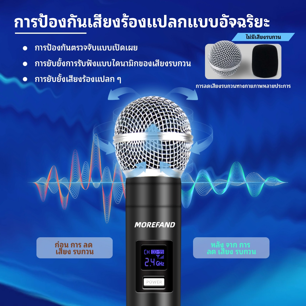 MOREFAND 58T ไมโครโฟนไร้สาย ไมค์ไร้สาย UHF คาราโอเกะ แบบชาร์จไฟ สําหรับงานแต่งงาน ปาร์ตี้ โบสถ์ พูด