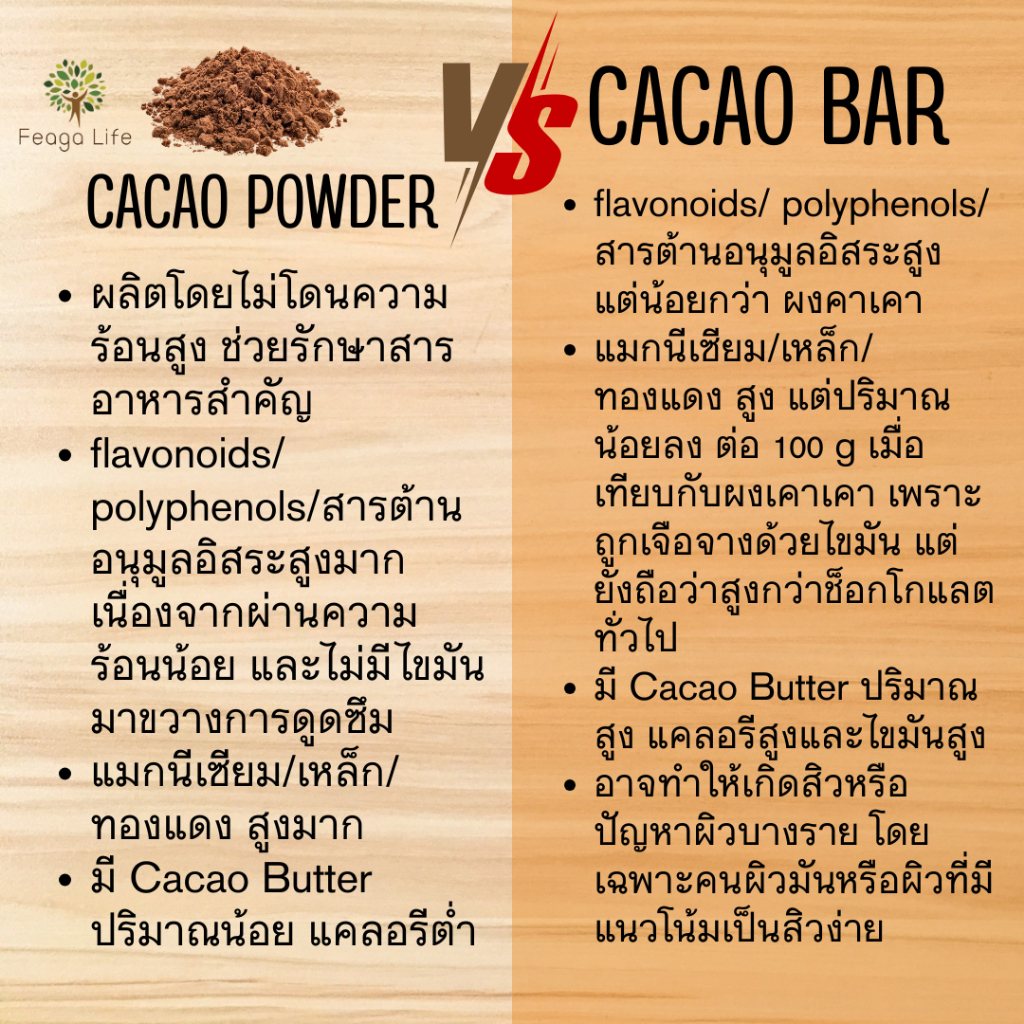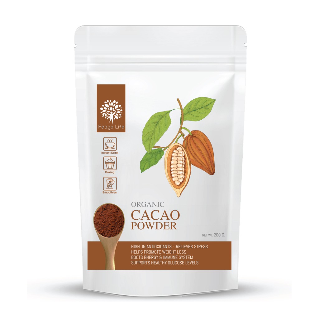 CACAO Powder ผิว อารมณ์ดี 200 กรัม ผงคาเคา Organic ยี่ห้อ Feaga Life