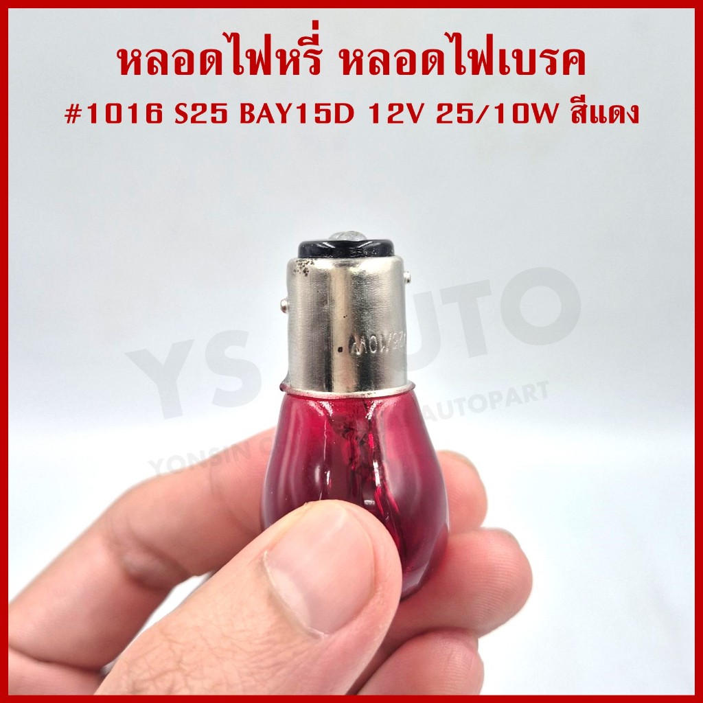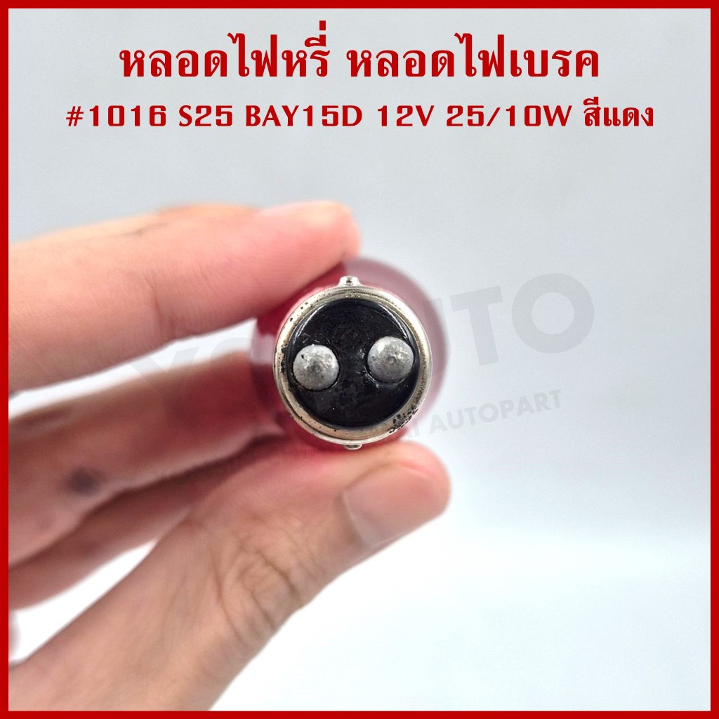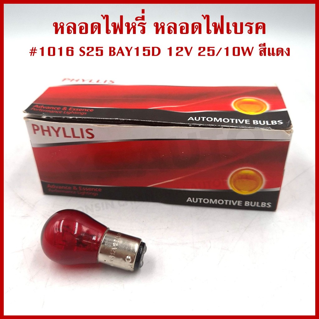 PHYLLIS หลอดไฟรถยนต์ 1016 สีแดง เขี้ยวตรง 12V 25/10W 2ไส้ 2จุด หลอดไฟเบรค ไฟถอย (10หลอด)