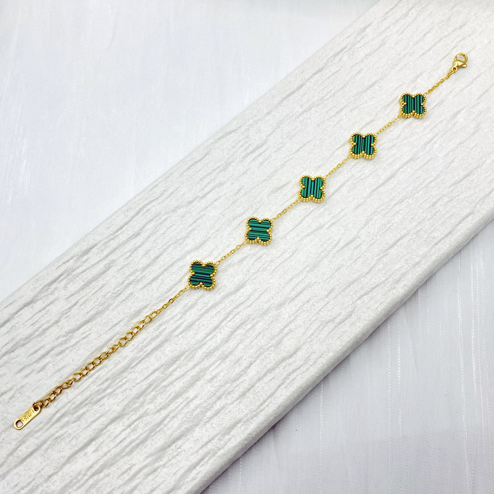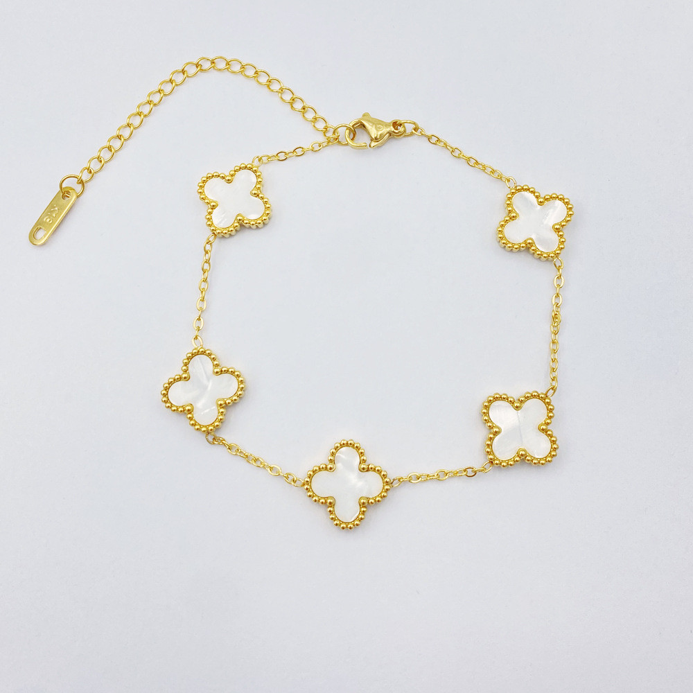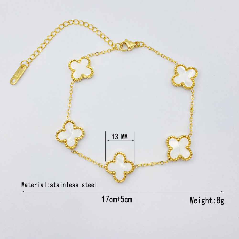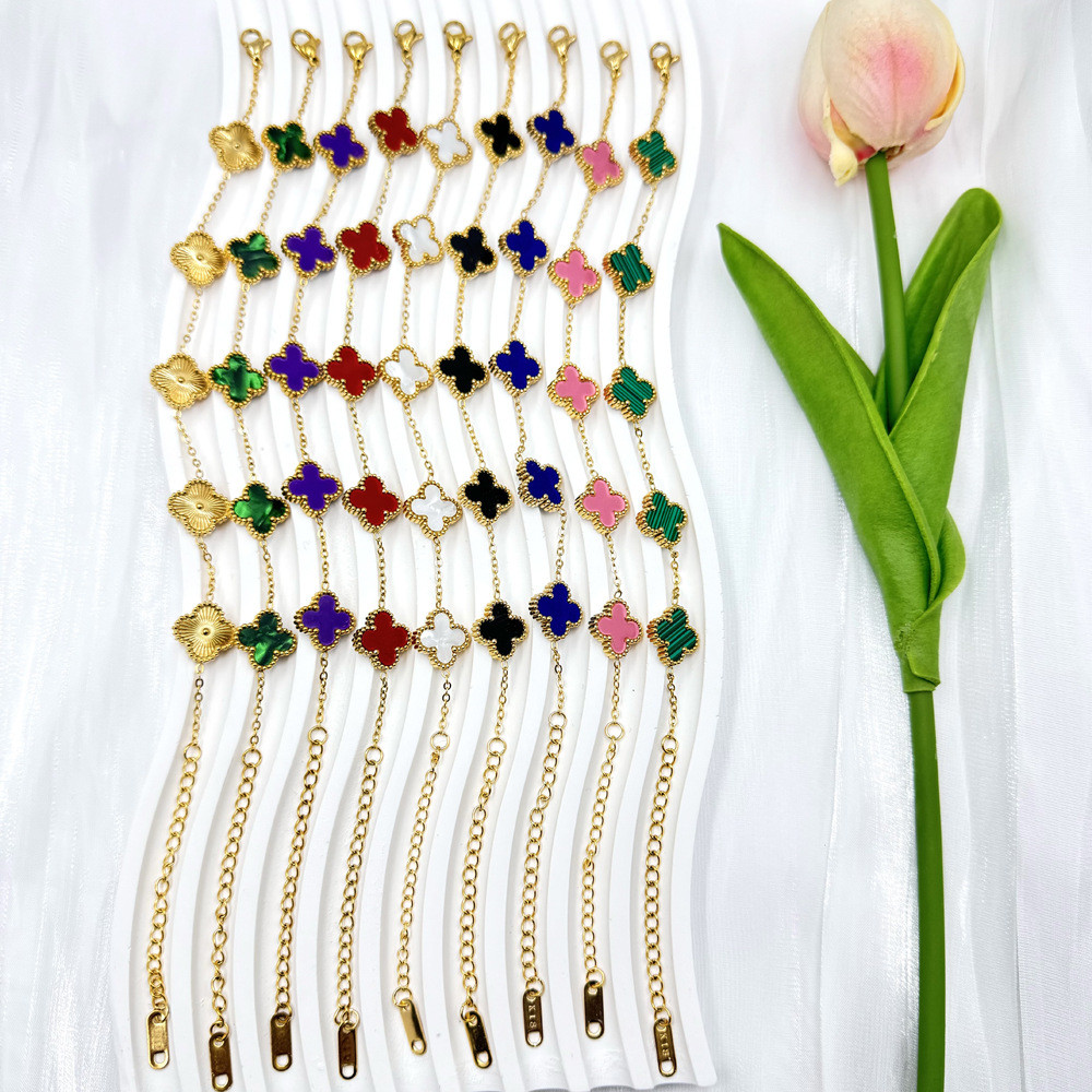 หลายสีตัวเลือกประณีตไทเทเนียมเหล็กสี่ใบโคลเวอร์ไทเทเนียมเหล็กสร้อยข้อมือผู้หญิงที่ละเอียดอ่อนโรแมนติก