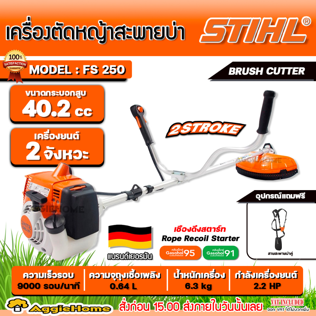 STIHL เครื่องตัดหญ้า 2 จังหวะ รุ่น FS250 (ข้อแข็ง) กำลัง 2.2 แรงม้า /1.6 KW./ 9000 รอบ/นาที เครื่องตัดหญ้า ตัดหญ้า