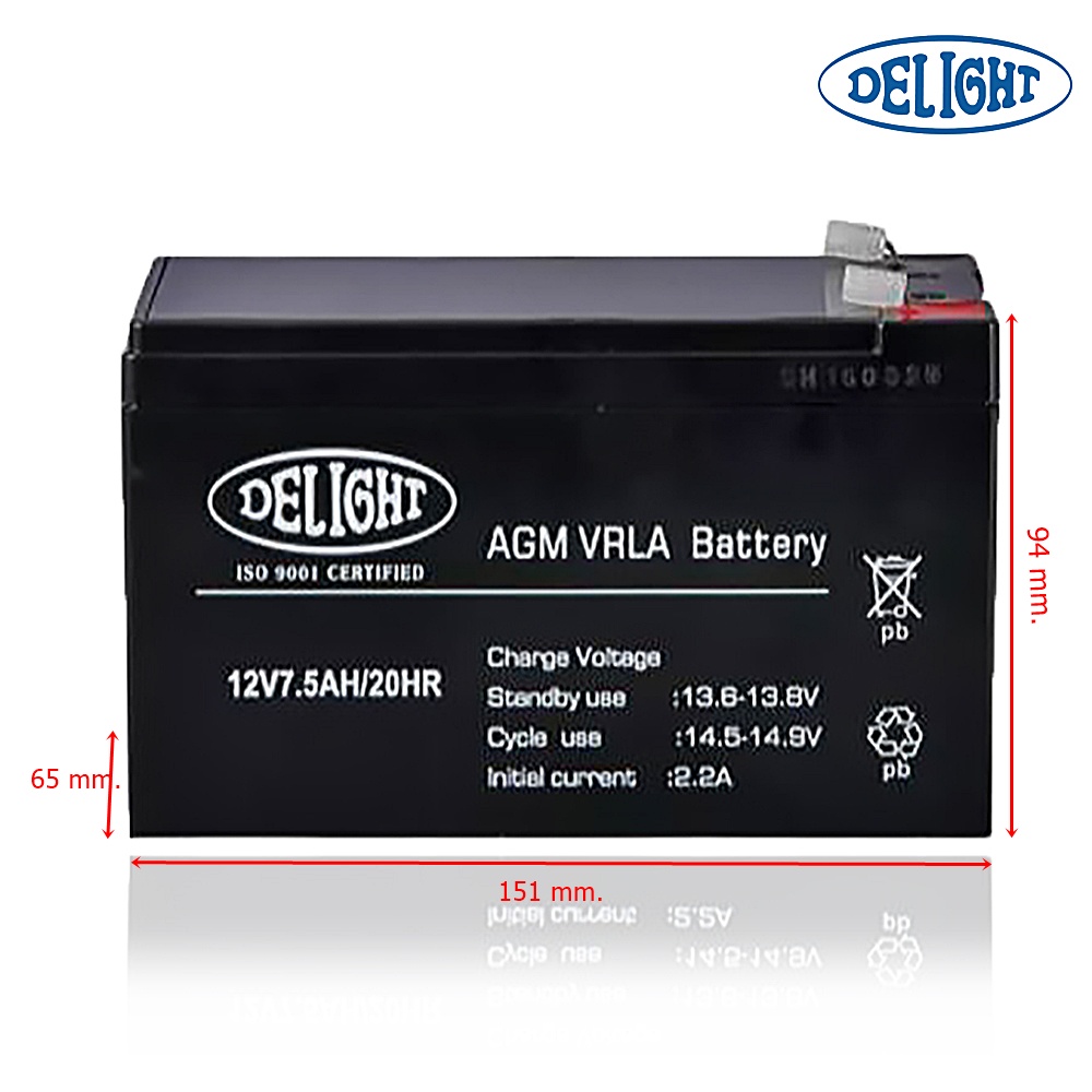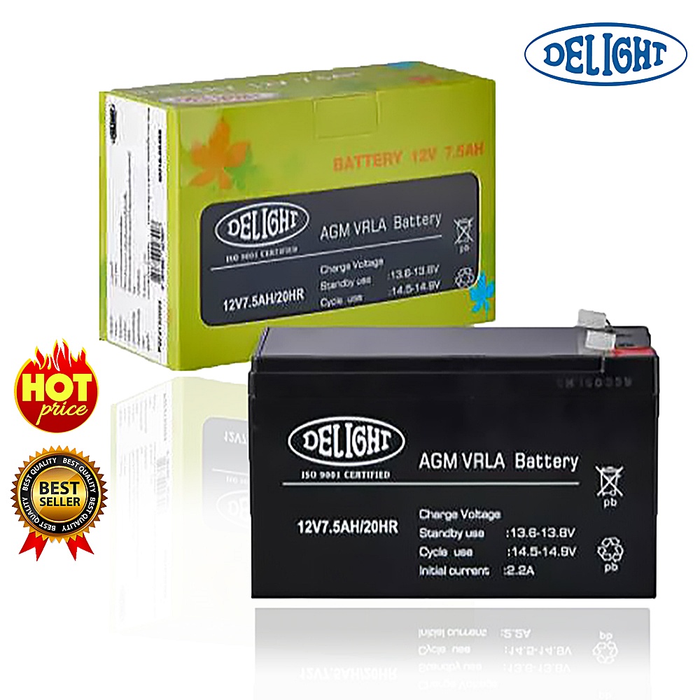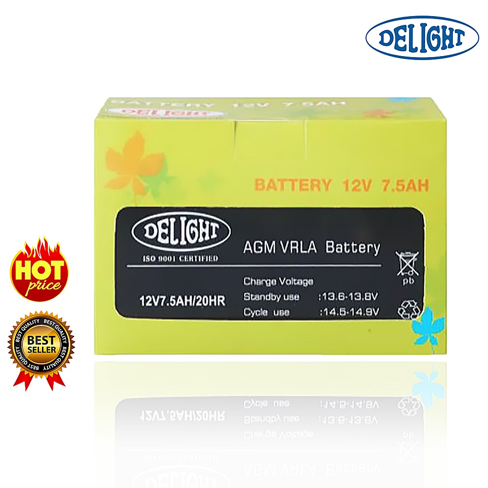 DELIGHT แบตเตอรี่ 12V 7.5AH/20Hr DELIGHT Black # โปรพิเศษ #