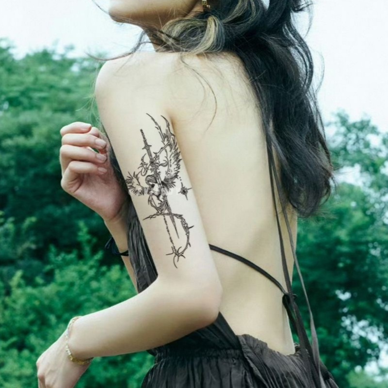 สักรูปแบบแองเจิลทดลองสาวเซ็กซี่เอวพืชสักสติกเกอร์รอยสักกันน้ําติดทนนาน15วันสติกเกอร์ผิวรอยสักปลอมชั่วคราว