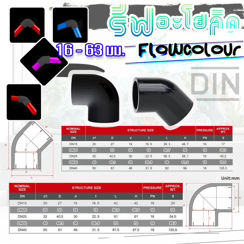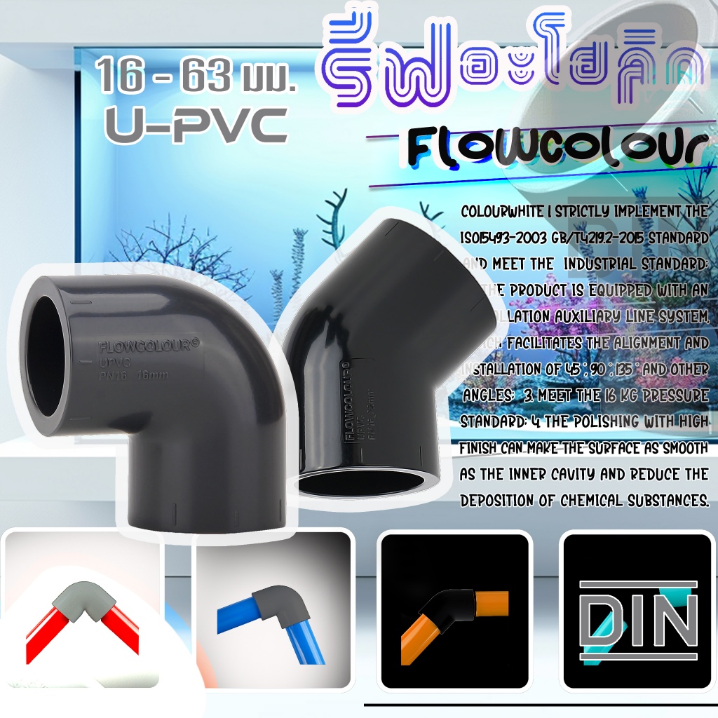 Reef-aholic Flowcolour ข้องอ 45 และ ข้องอ 90 สีเทา สวยงาม แข็งแรง ทนทาน ตามสไตล์ UPVC ขนาด 20-63 มม.