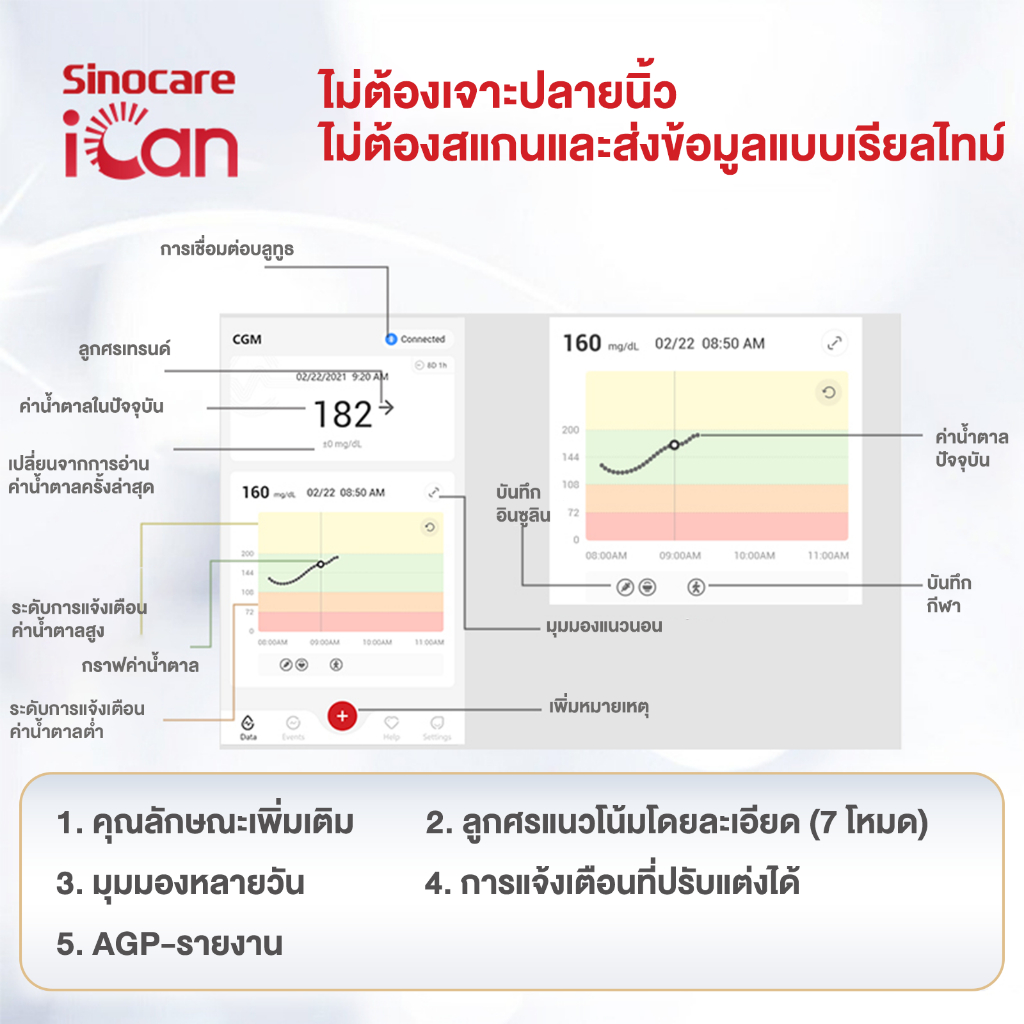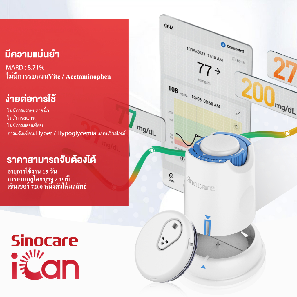 Sinocare iCan CGM [X5] เครื่องวัดระดับน้ําตาลในเลือดแบบต่อเนื่อง ตรวจได้15วัน โดยไม่ต้องเจาะปลายนิ้ว รู้ผลตรวจทุกๆ3นาที