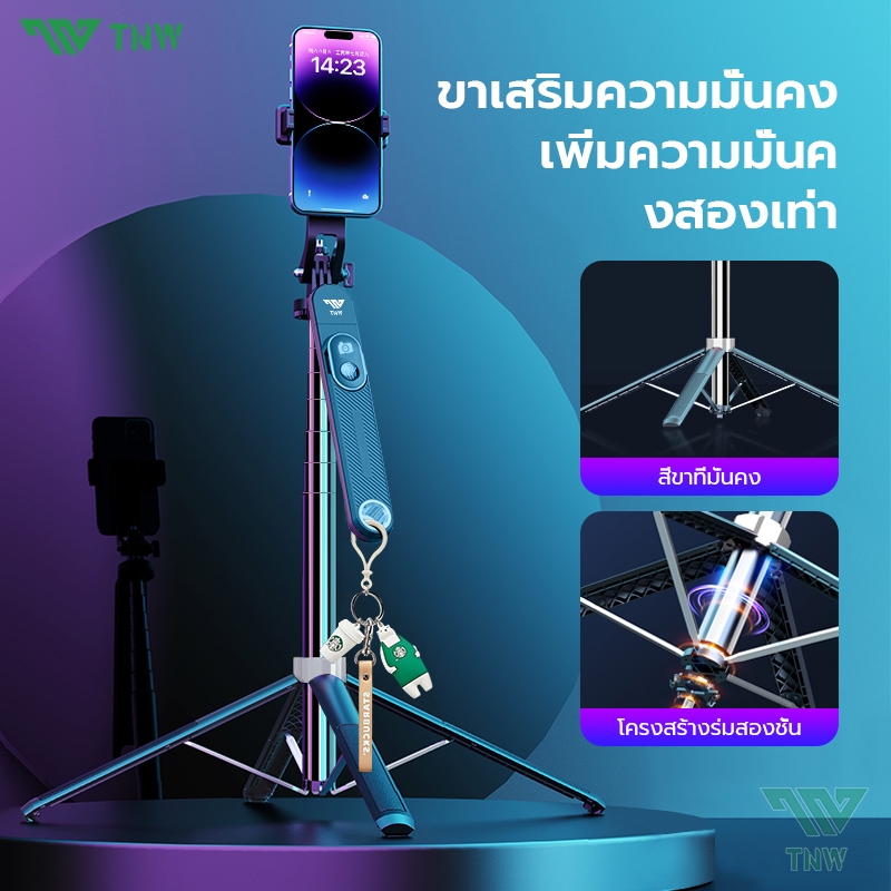TNW S25 Selfie Stick ขาตั้งกล้องไม้เซลฟี่ไร้สาย 1.8m พับได้มาพร้อมรีโมทบลูทูธ การหมุน 360° ไม้เซลฟี่