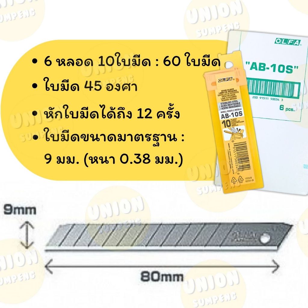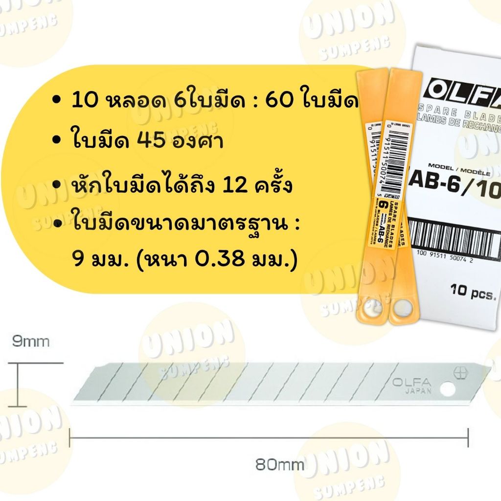 (USP)💢พร้อมส่ง💢(ยกกล่อง60ใบ) แท้💯OLFA ใบมีดคัตเตอร์ โอฟ่า AB-6 เหล็ก, AB-10S สแตนเลส (ใบเล็ก) เฉียง45องศา ใบคัตเตอร์