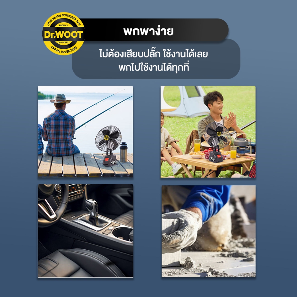 DR.WOOT พัดลมแบตเตอรี่ไร้สาย 8นิ้ว พัดลมแบต พัดลม แบต99V พัดลมแบตเตอรี่