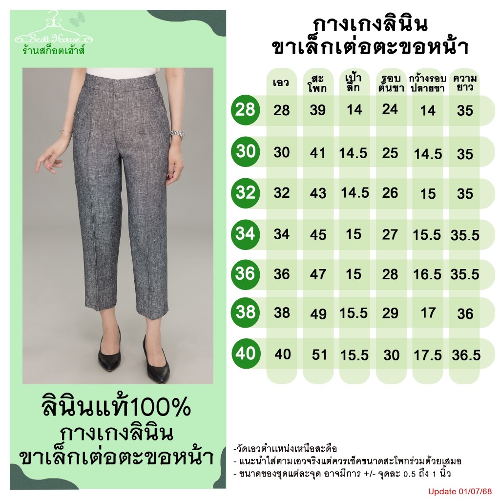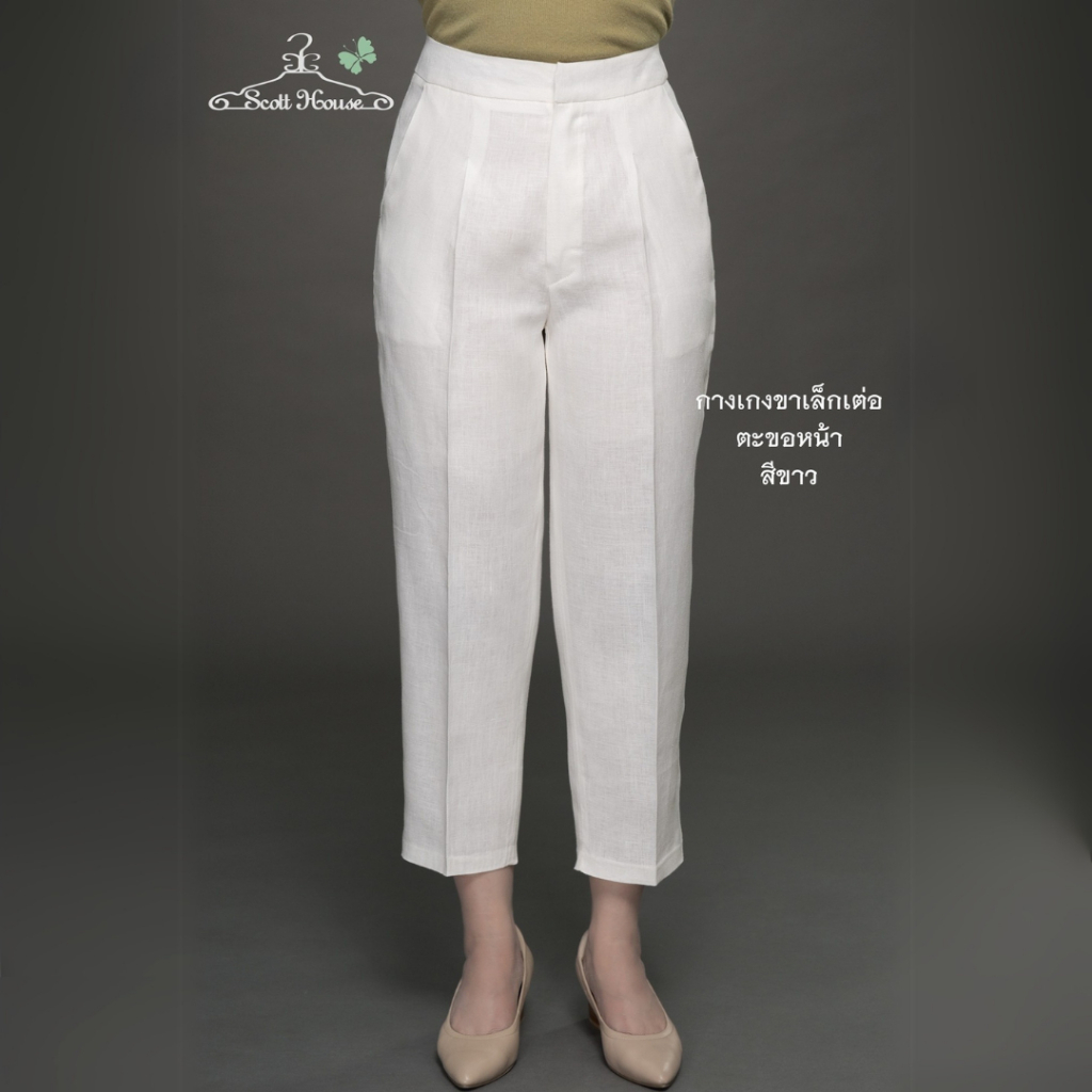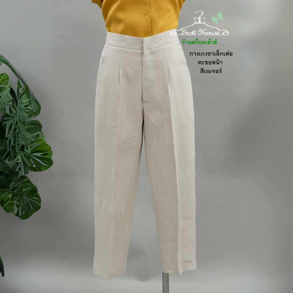 กางเกงลินินแท้100% รุ่นขาเล็กเต่อตะขอหน้า สีพื้น
