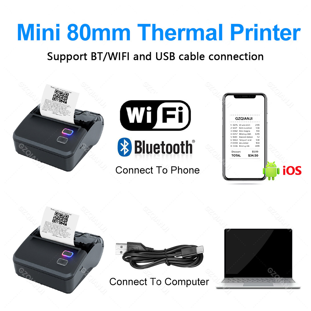 เครื่องพิมพ์ใบเสร็จ 80mm WIFI Bluetooth USB รองรับ Android และ IOS เวอร์ชัน Loyverse App
