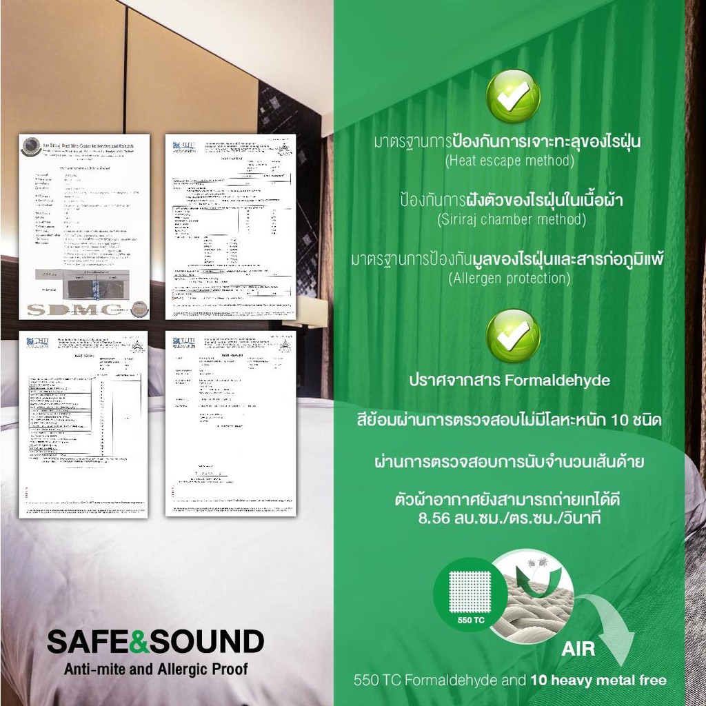 หมอนบอดี้ Hotel Grade หุ้มผ้ากันไรฝุ่นทอแน่น 500 เส้นด้าย SAFE&SOUND
