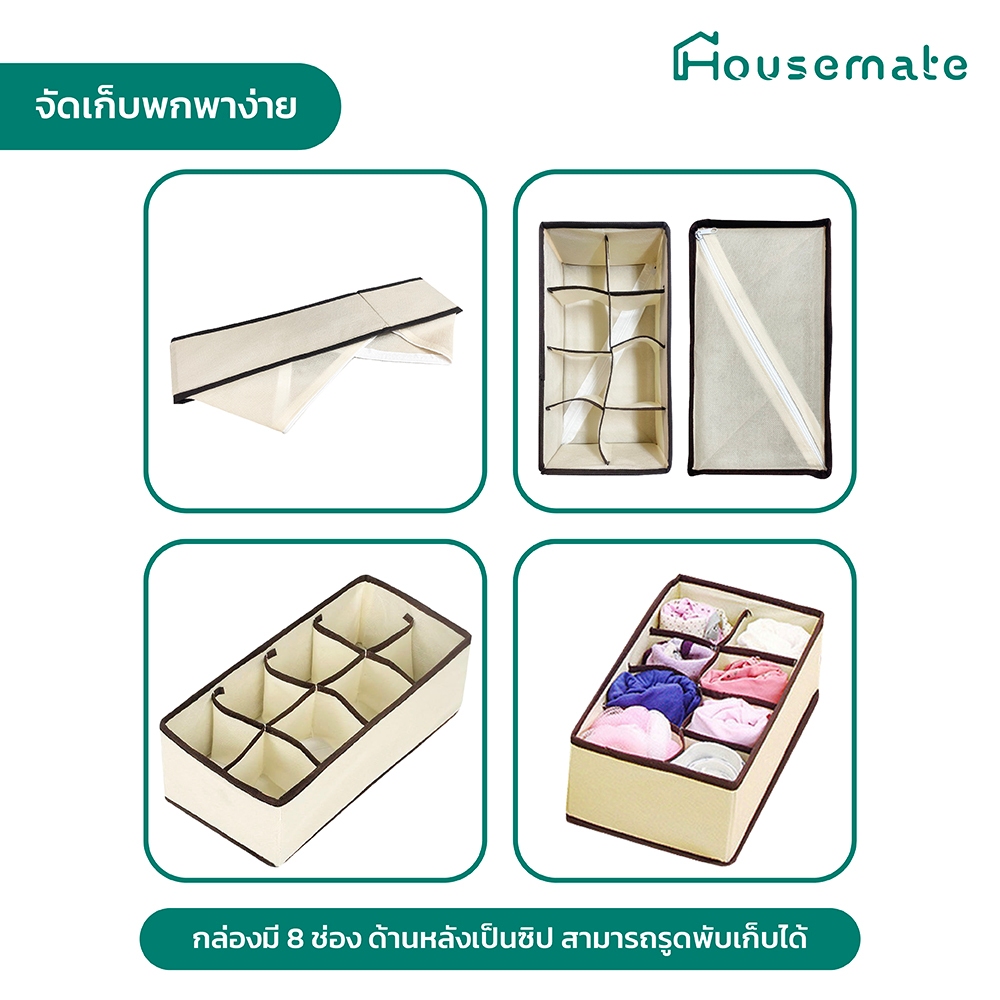 กล่องเอนกประสงค์ กล่องเก็บเสื้อใน กางเกงใน ช่องจัดระเบียบเสื้อผ้า 8ช่อง